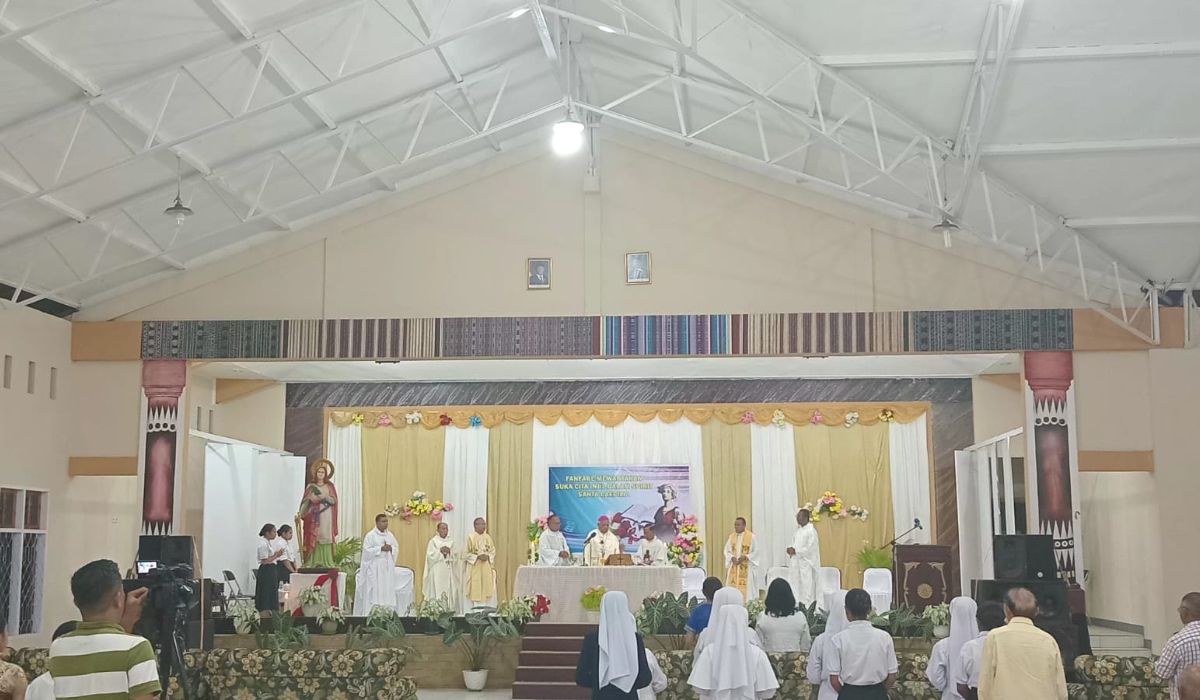 Administrator Apostolik Keuskupan Larantuka, Mgr. Frans Kopong Kung, Pr, menghadiri perayaan syukuran Lembaga Seni Budaya Fanfare Santa Caecilia Keuskupan Larantuka. Acara tersebut digelar di Gedung Multi Event Hall (OMK) St. Caecilia pada hari Sabtu, 29 November 2025. Dalam sambutannya, ia menekankan pentingnya spiritualitas iman yang diwariskan oleh Santa Caecilia.