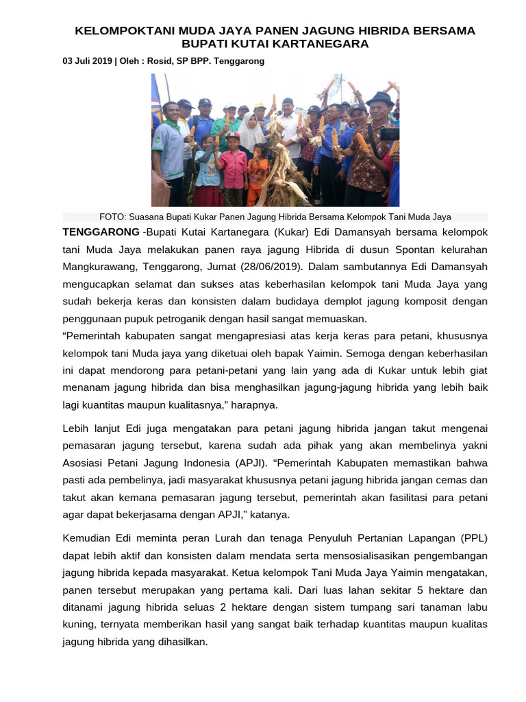 Lebih lanjut, Bupati menegaskan bahwa pemerintah daerah bersama Pemerintah Provinsi memiliki komitmen yang kuat dalam mendukung sektor pertanian sebagai salah satu pilar utama pembangunan. Upaya peningkatan produksi pangan, termasuk jagung, penting untuk menjaga stabilitas ekonomi masyarakat sekaligus mengurangi ketergantungan terhadap pasokan dari luar daerah.