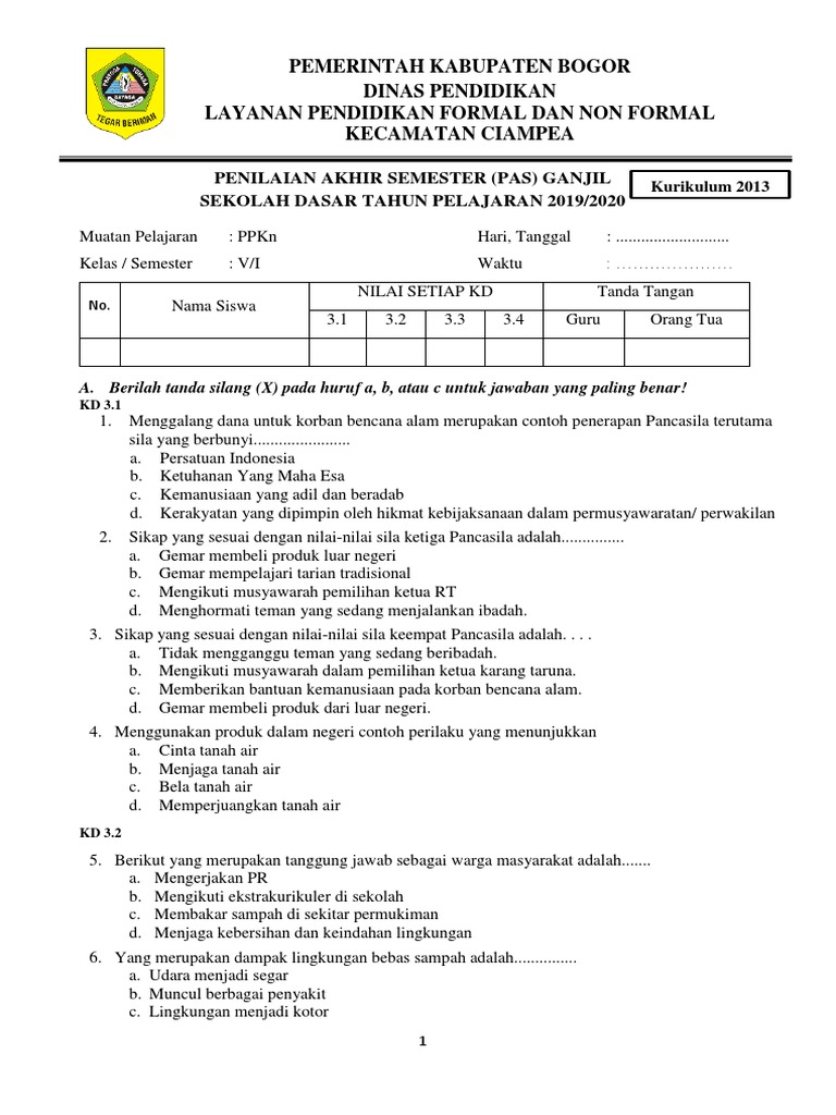 Latihan Soal PAS PPKN Kelas 5 SD Kurikulum Merdeka 2025