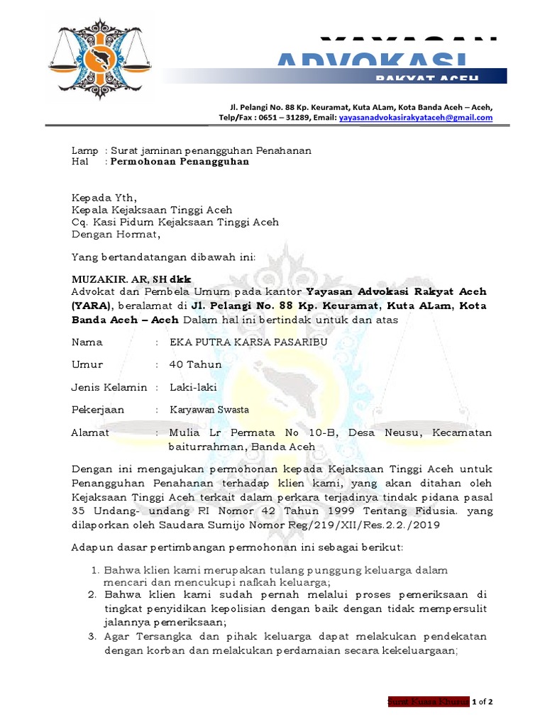 Permohonan Penangguhan Penahanan