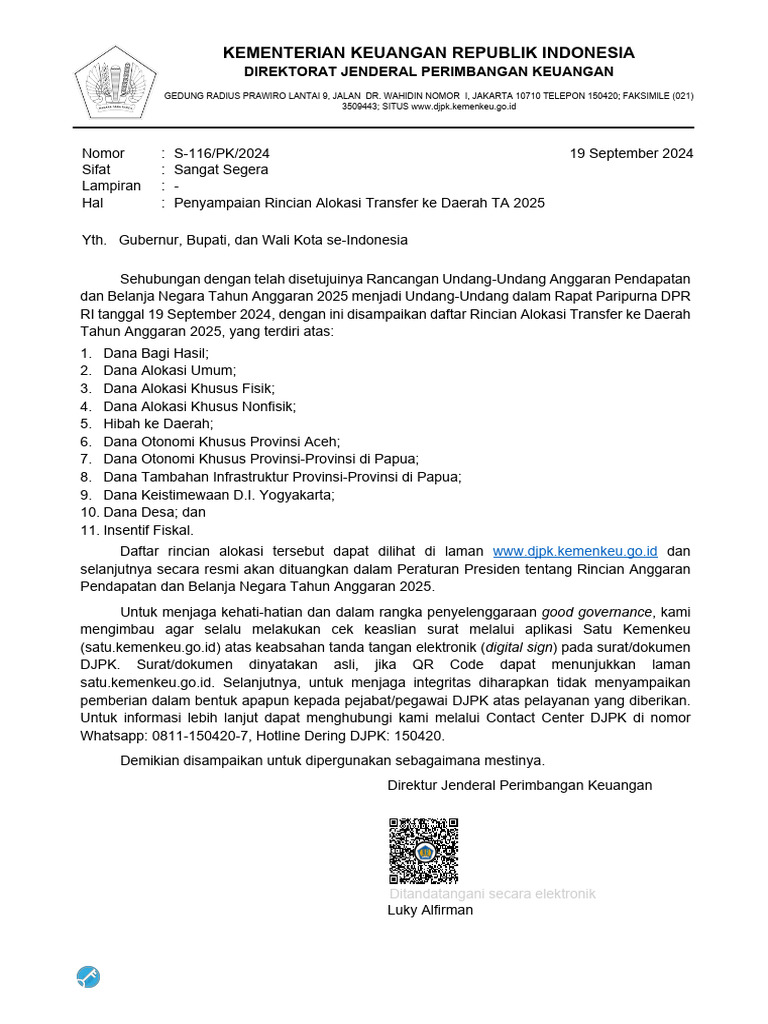 - DBH PPh Pasal 21: Rp 16,99 miliar (80% dari pagu Rp 21,24 miliar)