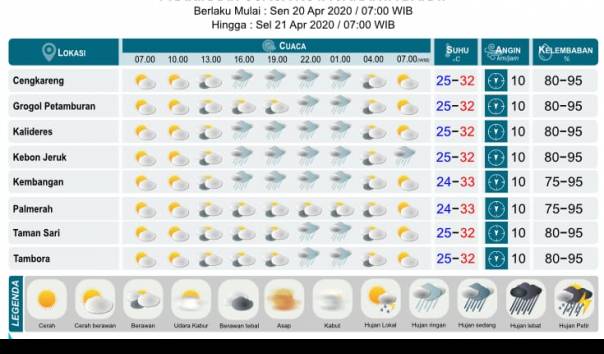 Pada siang hari, prakiraan cuaca menunjukkan kemungkinan terjadinya badai petir yang tersebar. Suhu tertinggi bisa mencapai 32°C. Pada malam hari, potensi hujan diperkirakan meningkat hingga 75 persen. Masyarakat diminta untuk tetap waspada terhadap perubahan cuaca yang bisa terjadi secara tiba-tiba.