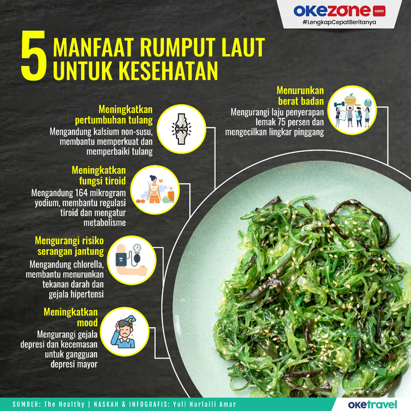 Rumput laut mengandung serat, mineral, dan vitamin yang bermanfaat untuk tubuh. Berikut adalah 7 manfaat rumput laut untuk kesehatan tubuh: